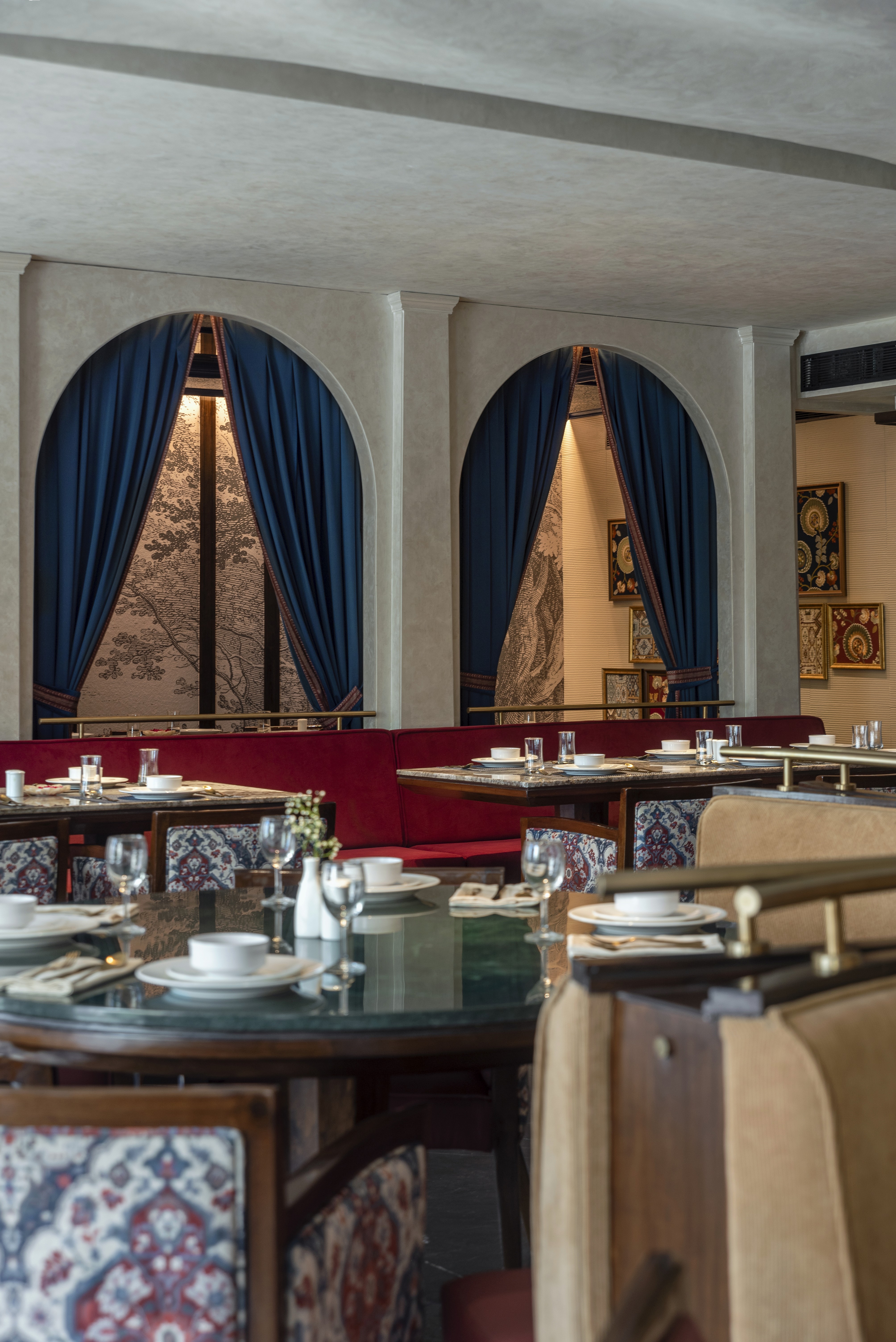 An intimate dining environment where contemporary planning meets the warmth of Indian hospitality, creating a spatial narrative rooted in colour, craft, and cultural familiarity.