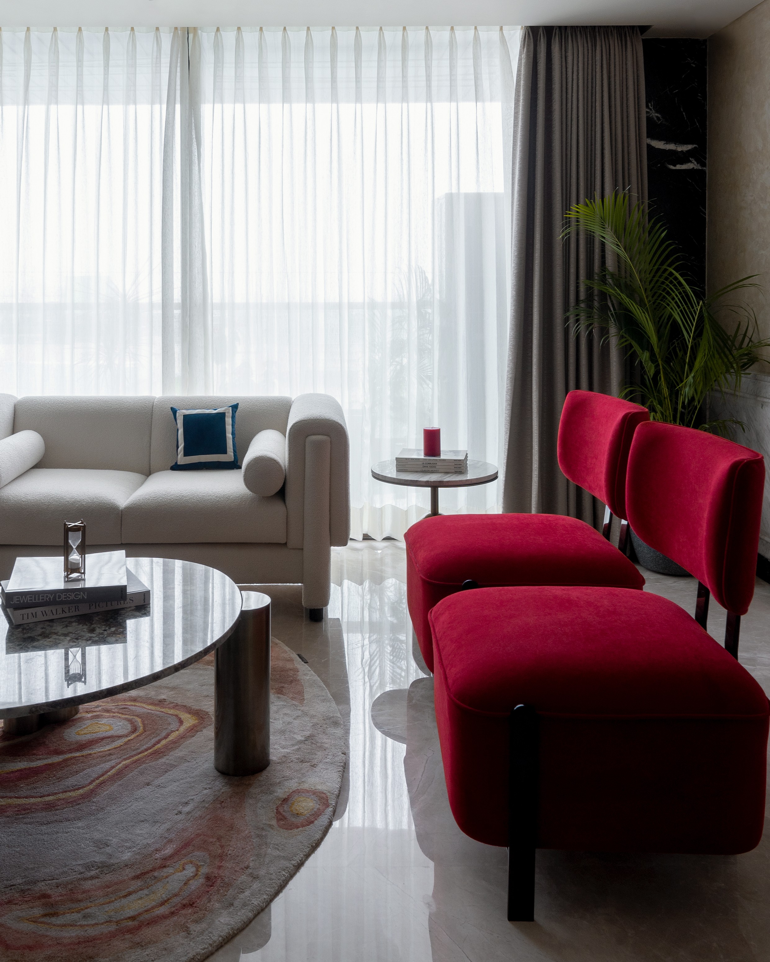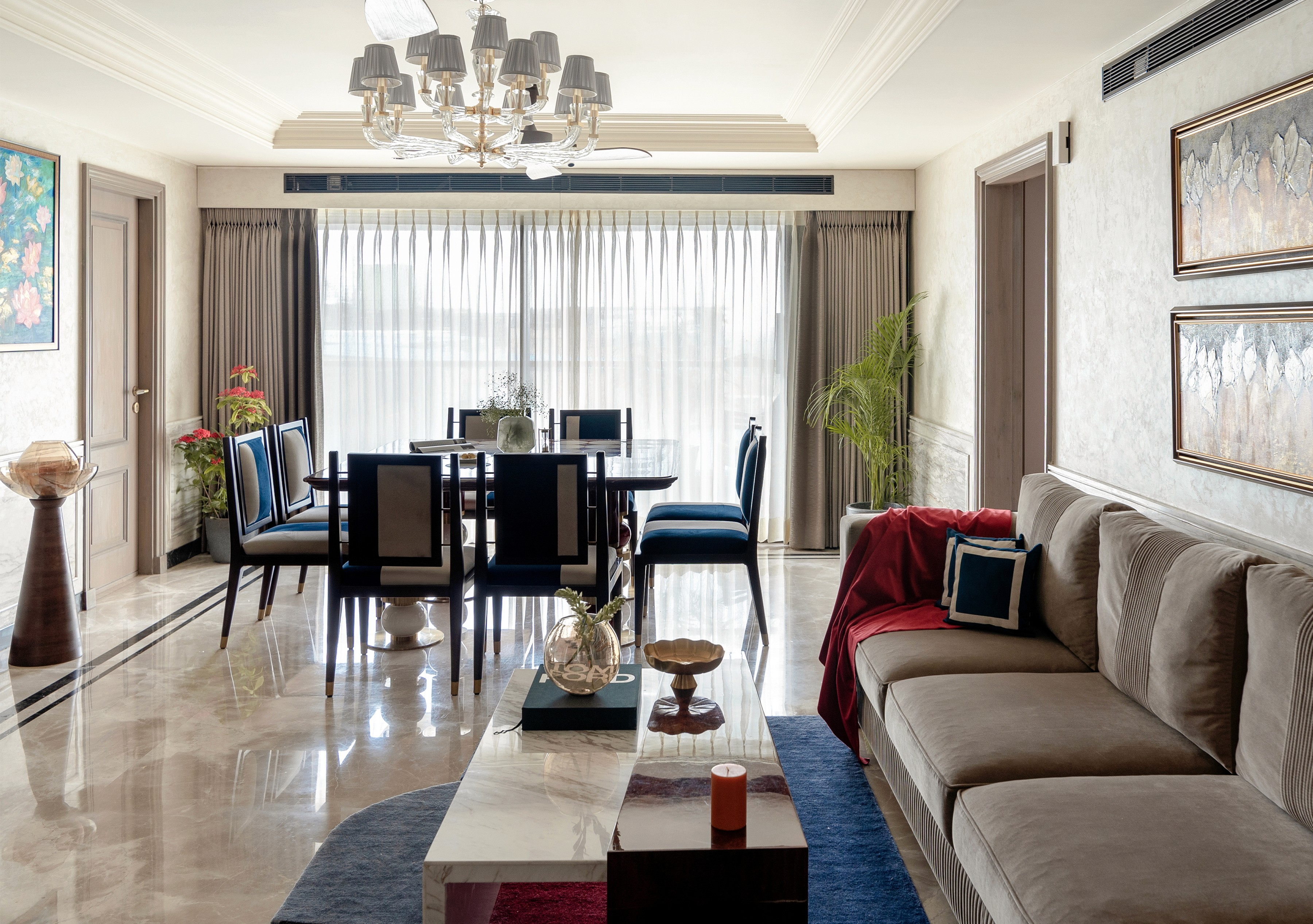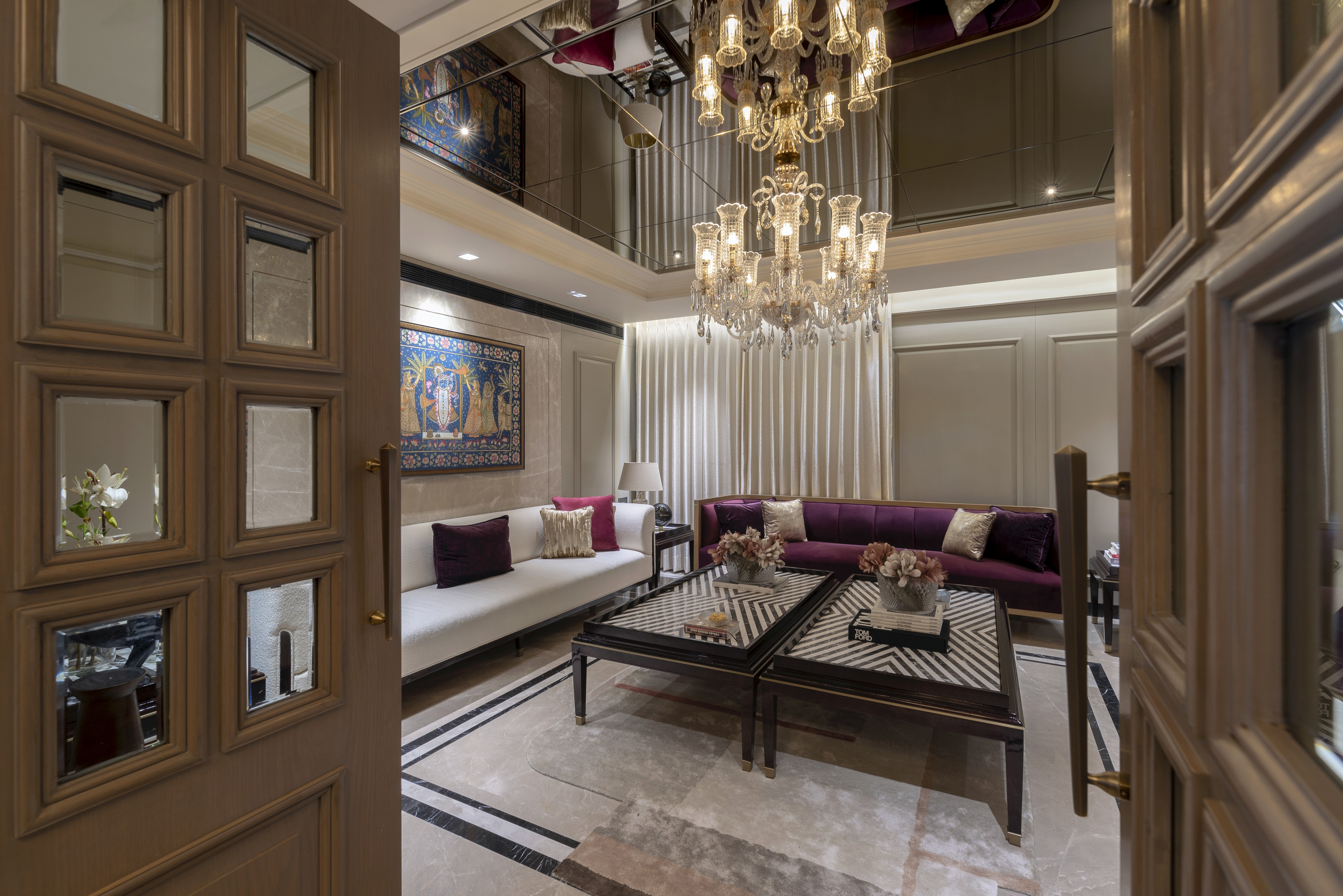 Spatial planning is defined by fluid connectivity and layered zoning. The duplex unfolds through interconnected living spaces, dual lounges, and six bedrooms, allowing both collective engagement and personal retreat. Circulation is intuitive, with carefully aligned sightlines creating continuity across levels while subtly delineating private and shared domains.